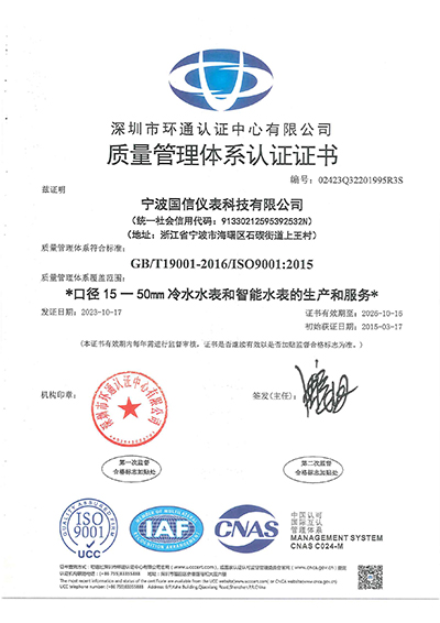 ISO9001質(zhi)量管理體系認(rèn)證證書