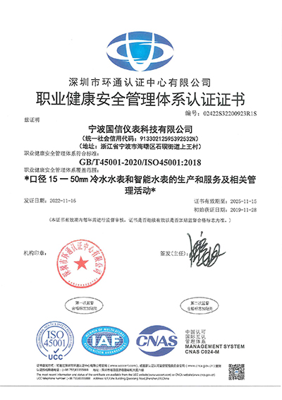ISO45001職業健(jian)康安全管理體(tǐ)系認證證書