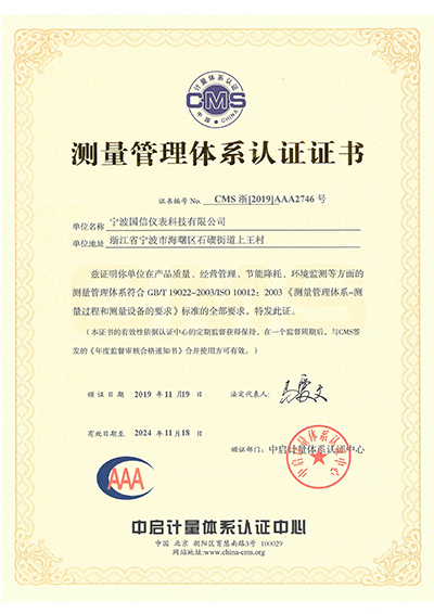 ISO10012測(ce)量管理體系認(rèn)證證書